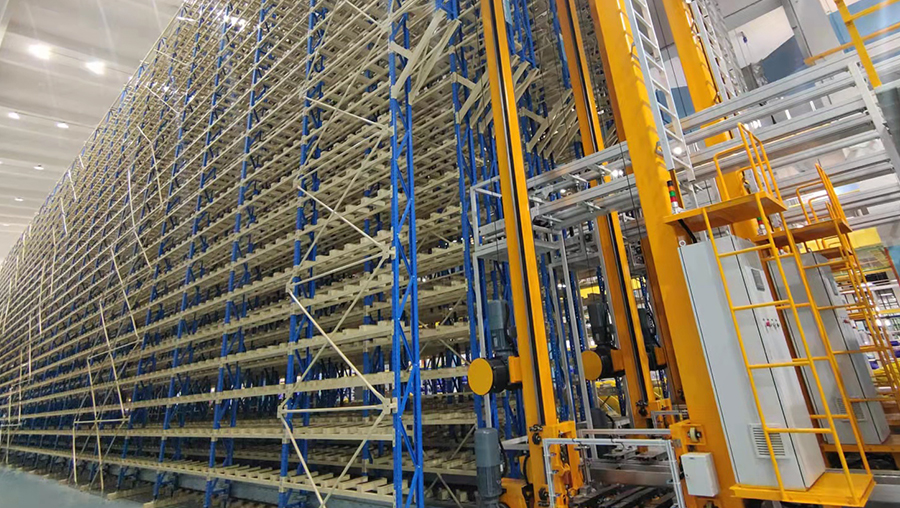 該客戶是一家主要主要從事光纖預(yù)制棒的研發(fā)、生產(chǎn)和銷售的國(guó)家級(jí)高新技術(shù)企業(yè),主導(dǎo)產(chǎn)品涵蓋了光纖預(yù)制棒和光纖、光纜。客戶需求為光纖預(yù)制棒的儲(chǔ)存,進(jìn)出庫(kù)、生產(chǎn)線對(duì)接。產(chǎn)線節(jié)拍光纖預(yù)制棒各90盤/h,立庫(kù)能力為 450盤/h,24小時(shí)/天制