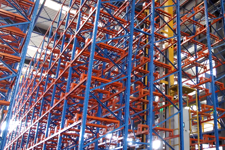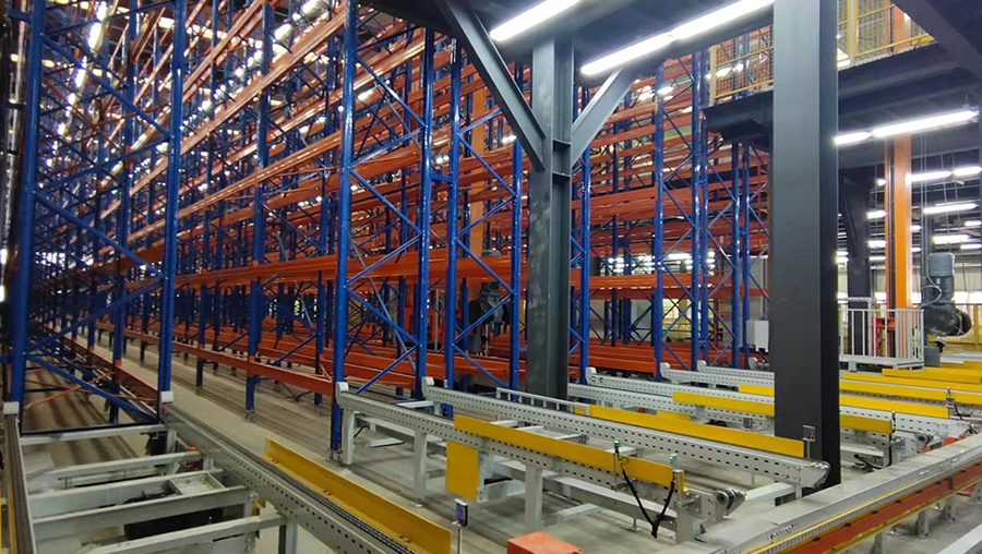 本方案總貨位4352個,高度20m。由6套直式巷道堆垛機系統、立體貨架系統、6套RGV、6套輸送線、6套拆疊盤機、稱重系統、RFID系統、WMS倉庫管理系統和WCS倉儲監控系統等組成。提高3倍以上倉儲空間面積,綜合生產成本降低20%以上。